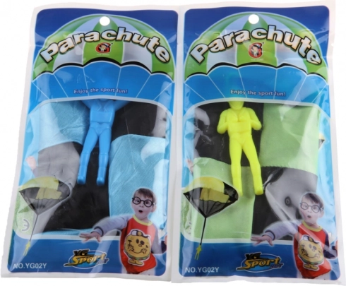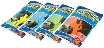 Das Fallschirmspringer-Spielzeug in vier Farbvarianten bietet viel Spaß für Kinder und Erwachsene. Ideal für den Einsatz auf offenen Flächen wie Wiesen oder Spielplätzen.