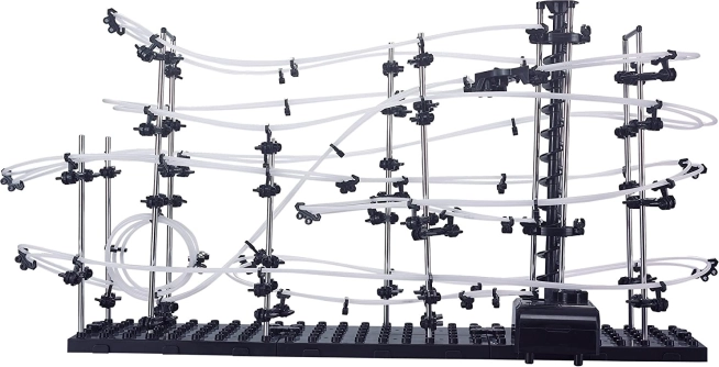 Die Spacerail Kugelbahn ist nicht nur ein unterhaltsames Spielzeug, sondern auch eine dekorative Ergänzung für jedes Zimmer. Die Konstruktion ermöglicht es Ihnen, den Verlauf der Bahn nach eigenen Vorlieben zu gestalten, unabhängig von den Anweisungen im Setup-Guide.