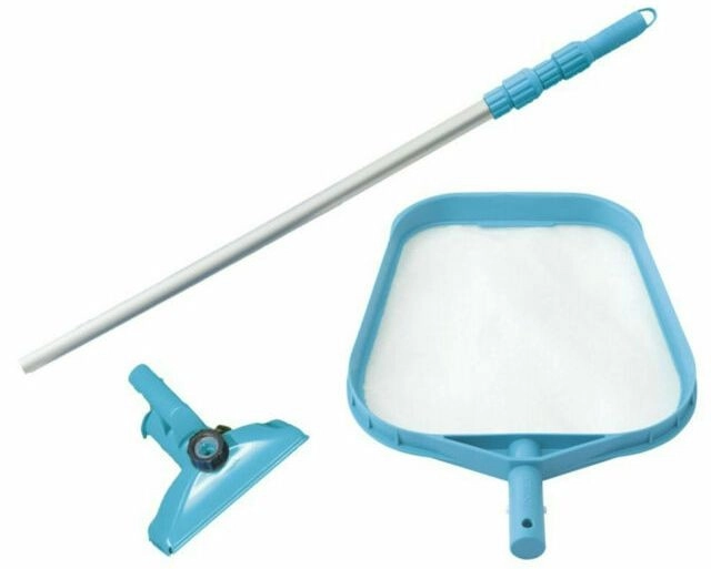 Das komplette INTEX-Reinigungsset ist die ideale Lösung für heimische Pools bis zu einem Durchmesser von 488 cm. Der an den Gartenschlauch angeschlossene Wassersauger erzeugt Druck und sammelt Sand, Laub und Ablagerungen vom Boden effektiv im beiliegenden Beutel, während das feine Netz schwimmende Verunreinigungen von der Oberfläche mühelos entfernt.