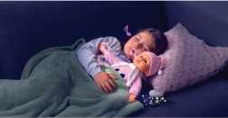 Die schöne Puppe Bambolina Jasmine kann bis zu 50 tschechische Wörter sprechen. Wenn man Jasminas Bäuchlein drückt, beginnt sie zu sprechen. Komm, spiel mit ihr, sie sagt dir zum Beispiel: „Mama, ich hab dich lieb.“