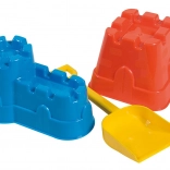 Im Lieferumfang sind zwei Burgmauer-Formen und eine praktische Schaufel enthalten. Der robuste Kunststoff hält häufigem Einsatz im Sandkasten und am Meer stand und lässt sich nach dem Spielen leicht abspülen. Das Farbdesign ist unterschiedlich – das Bild ist illustrativ und die Farben können je nach aktueller Lagerverfügbarkeit variieren.