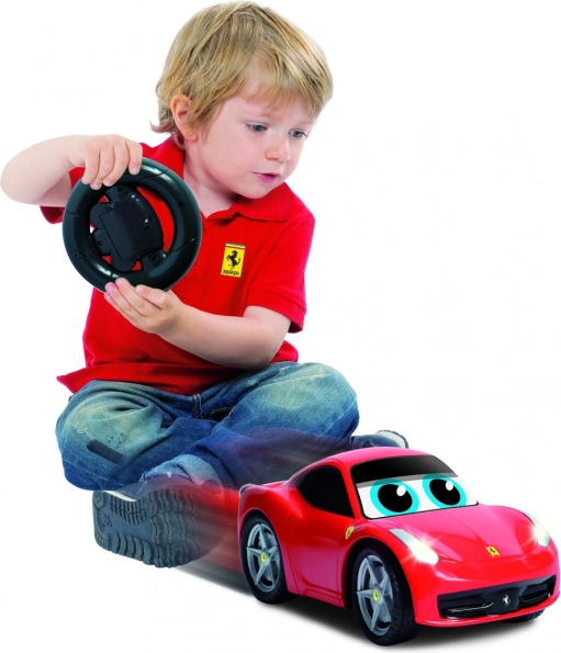 Entdecken Sie Ihr erstes RC-Auto Ferrari für die Kleinsten! Das lustige rote Auto Ferrari 458 Italia mit einfacher Steuerung über das Lenkrad, originalen Ferrari-Sounds und kindgerechtem, sicheren Design für Kinder ab 2 Jahren bringt viel Freude und fördert die Motorik.