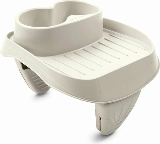 Der doppelte Halter fasst zwei Flaschen oder Becher und bietet zudem ein kleines Tablett für Snacks oder Kleinigkeiten, die Sie griffbereit haben möchten.