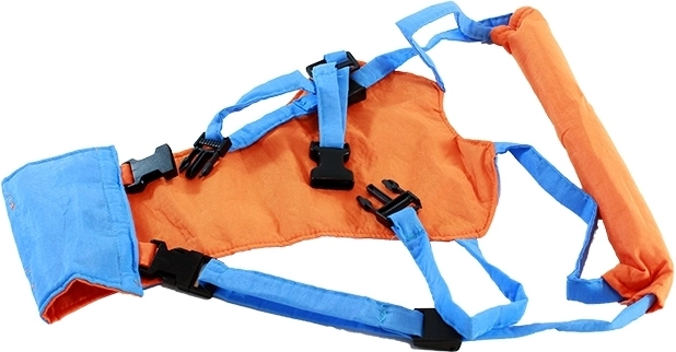 Die Gurte sind für verschiedene Größen verstellbar, was eine bequeme Nutzung sowohl für das Kind als auch für die Eltern ermöglicht. Einfaches Anlegen mit Kunststoffschnallen.