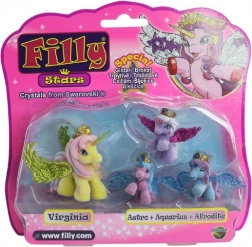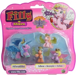 Filly Stars bringen eine Portion Fantasie in jedes Kinderzimmer. Das 1+3-Set enthält ein größeres Pferdchen und drei kleine Fohlen in leuchtenden Farben. Dank der glitzernden Flügel, goldenen Kronen und magischen Hörner lieben Kinder märchenhafte Geschichten und kreatives Spielen.