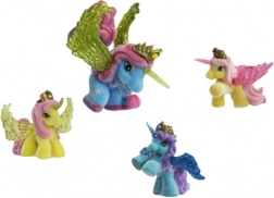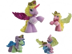 Jedes Pferdchen hat glitzernde Flügel, ein magisches Horn und eine goldene Krone mit farbigem „Kristall“ – ideal für märchenhafte Rollenspiele.