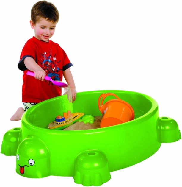 Sandkasten in Schildkrötenform bietet Kindern einen sicheren und unterhaltsamen Platz zum Spielen mit Sand. Das hellgrüne Design überzeugt mit seinem fröhlichen Erscheinungsbild.