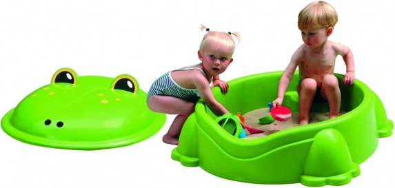 Der Deckel in Form eines Frosches schützt den Sand nicht nur vor schlechtem Wetter, sondern gewährleistet auch Sicherheit.