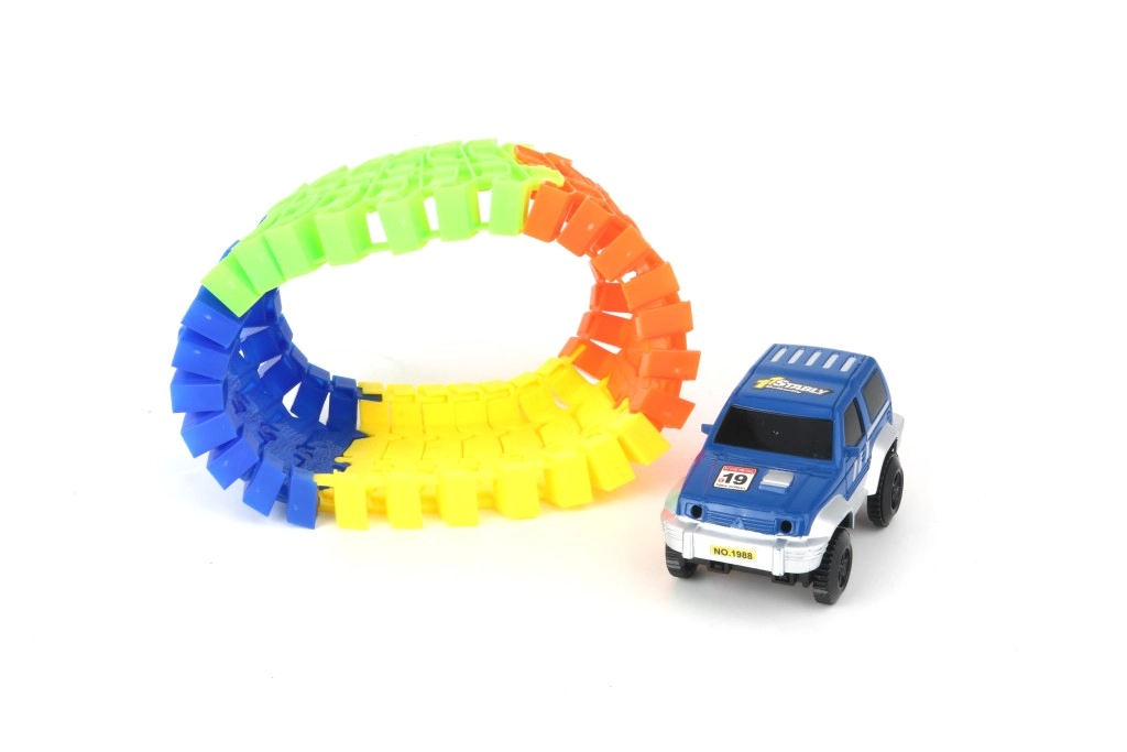 Diese variable Rennstrecke ist die ideale Wahl für kleine Rennfahrer. Dank des einfachen Stecksystems bauen Kinder im Handumdrehen ihre eigene Strecke und genießen schnelle Fahrten mit dem beiliegenden Auto. Die Bahn lässt sich frei formen, was Kreativität und Fantasie fördert.