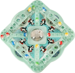Das quadratische Brett passt auf jeden Tisch und ist ideal für unterwegs. Bunte Pinguin-Spielfiguren für 2–4 Spieler.