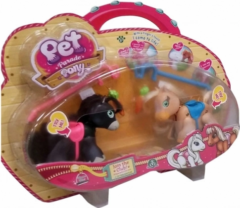 Pet Parade Ponys sind wie lebendig. Drücken Sie sanft und beobachten Sie, wie sie sich Ihrem Finger folgend bewegen. Sie verändern die Bewegungen von Kopf und Schweif und reagieren auf Ihre Berührungen. Das echte Abenteuer beginnt, wenn Sie die Leine nehmen und zu einem Spaziergang aufbrechen. Die Ponys bewegen lustig ihre Beine und blinzeln mit den Augen, was stundenlangen Spaß und Freude bringt.