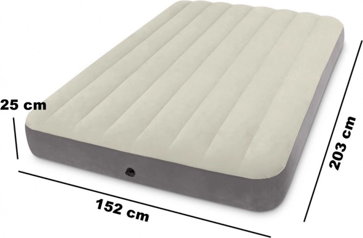 Die aufblasbare Matratze INTEX bietet bequemes und stabiles Liegen für zwei Personen. Dank der wasserabweisenden Velours-Oberfläche ist sie angenehm im Griff und rutschfest, während strapazierfähiges PVC eine lange Lebensdauer zu Hause und unterwegs sicherstellt.