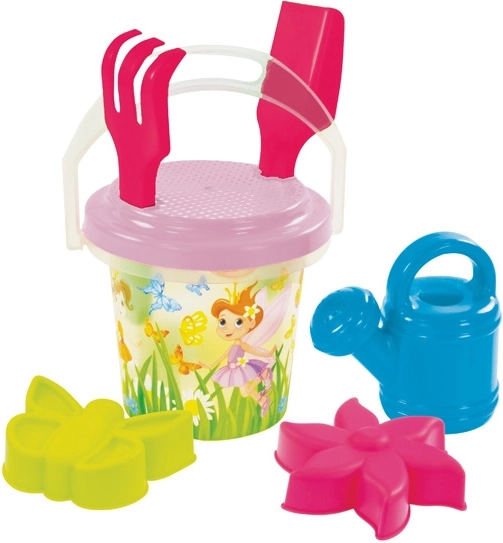 • Komplette Ausstattung: Eimer 1,3 l, Rechen, Schaufel, Sieb, Gießkanne und 2 thematische Förmchen