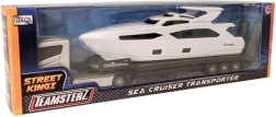 Der Teamsterz Lkw mit Boot bietet doppelten Spaß: Straßentransport und Wasserabenteuer. Der realistische Lkw in Weiß‑Orange zieht ein Boot auf einem Anhänger – das regt die Fantasie und das Erzählen von Geschichten an.