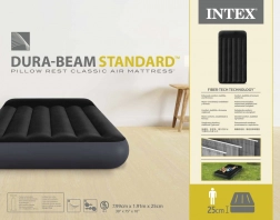 Diese aufblasbare Matratze in der Größe Standard Twin (99 × 191 × 25 cm) ist die ideale Lösung für temporäres Schlafen zu Hause und unterwegs. Die obere gepolsterte Veloursoberfläche ist angenehm im Griff und hilft, das Laken an Ort und Stelle zu halten, während die erhöhte Kopfstütze natürliche Unterstützung für Kopf und Nacken bietet.