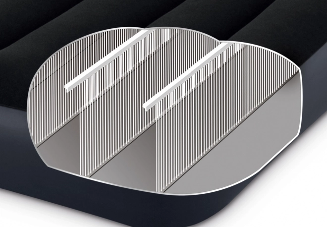 Das Bett lässt sich leicht auf- und abpumpen und benötigt zusammengefaltet nur wenig Platz. Dank der durchdachten inneren Konstruktion mit längs verlaufenden Kammern verteilt es das Gewicht gleichmäßig und sorgt die ganze Nacht über für Stabilität.