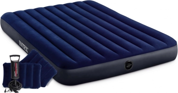 Praktische aufblasbare INTEX-Matratze für zwei Personen mit den Maßen 203 × 152 × 25 cm, weicher Velours-Oberfläche und stabiler Konstruktion für erholsamen Schlaf zu Hause und unterwegs. Im Lieferumfang enthalten sind eine Handkolbenpumpe, 2 aufblasbare Kissen und ein Reparaturflicken. Dank des Boston-Ventils ist das Auf- und Ablassen der Luft schnell und einfach.