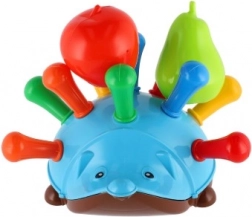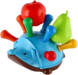 Dieses Spielzeug ist mit zehn Löchern auf dem Rücken des Igels ausgestattet, in die Kinder farbige "Stacheln" stecken können. Zum Set gehören auch ein Apfel und eine Birne, die zwischen die Stacheln gesteckt werden können und zusätzliche Spielvarianten bieten. Für noch mehr Spaß ist der Igel mit vier Manövrierrollen und einer Öffnung zur Befestigung einer Schnur ausgestattet, was ihn auch zu einem Ziehspielzeug macht.