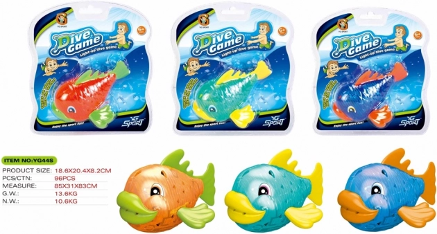 Lustiger Tauchfisch für Badewanne und Pool, der bei Kontakt mit Wasser aufleuchtet. Werfen Sie ihn ins Wasser, tauchen Sie nach ihm und fördern Sie spielerisch die Schwimmfähigkeiten der Kinder. Erhältlich in 3 fröhlichen Farben.