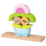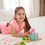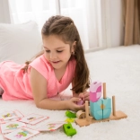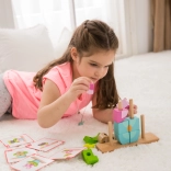 Dieses variable Holz‑Steckspiel begeistert kleine Baumeister und Tierliebhaber. Die Teile werden auf die Stifte der Holzbasis gesteckt und lassen sich zu einer Eule oder weiteren Formen kombinieren – so wächst das Spiel gemeinsam mit den Fähigkeiten des Kindes. Bildkarten mit Aufgaben bringen neue Ideen und machen aus jedem Aufbau eine kleine Herausforderung.