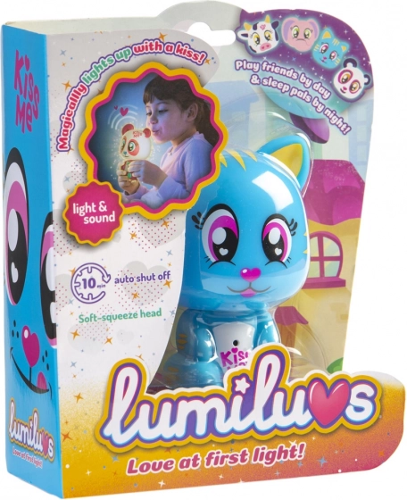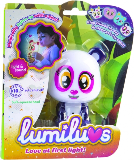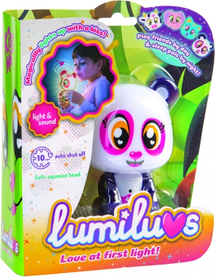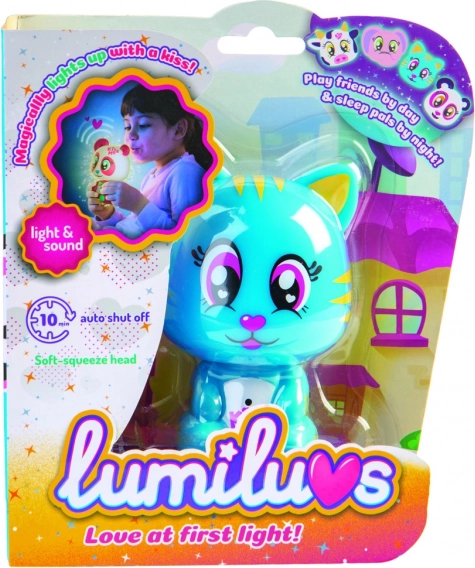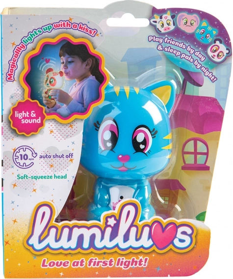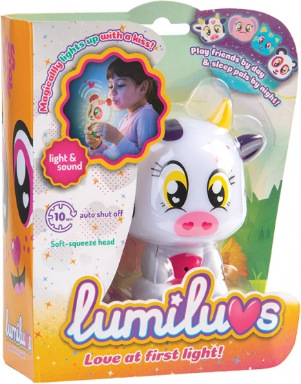 Das Lumiluvs Tierchen leuchtet und plappert, wenn man auf den Bauch und das Mündchen pustet.