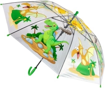 Dieser transparente Kinder-Regenschirm mit verspielten Dinosauriern ist ideal für Schule, Kindergarten und Ausflüge. Die transparente Kuppel sorgt beim Gehen für eine bessere Sicht, während stabile Kunststoff- und Metallelemente zuverlässigen Schutz vor Regen bieten.