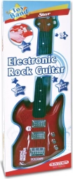 Die rote Bontempi-Rockgitarre mit einer Höhe von 62 cm bereitet kleinen Musikern viel Freude. Sie hat 6 Metallseiten mit Sound bei Tastendruck, 8 vorinstallierte Melodien und wird mit 2× AA-Batterien betrieben (nicht enthalten).