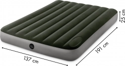 Aufblasbares Bett in der Größe 1,37 m x 1,91 m x 25 cm. Maximale Tragfähigkeit 272 kg. Die Aufblaszeit beträgt 3,5 Minuten.