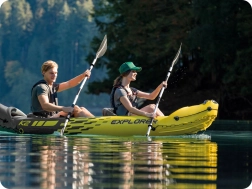 Kajakpaddel mit einer Länge von 2,18 m. Aluminiumstange mit zwei Kunststoffblättern. 3 Größenpositionen.