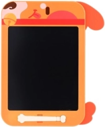 Das verspielte orangefarbene Design mit Ohren und einem Knochen als Stylus motiviert Kinder zum Zeichnen und spielerischen Lernen.