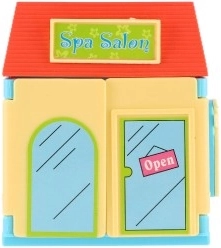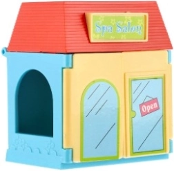 Kleiner Beauty-Salon mit öffnender Tür und Zubehör inspiriert zu Rollenspielen und fördert Fantasie sowie Kommunikationsfähigkeiten.