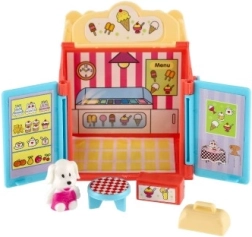 Bunter Mini-Laden mit tollen Details, Menü und Zubehör fördert kreativen Kundenservice und sommerliche Geschichten.