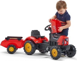 Den Anhänger je nach Bedarf ankuppeln oder abnehmen. Ideal für Spielzeug, Sand oder kleine Aufgaben eines jungen Landwirts.