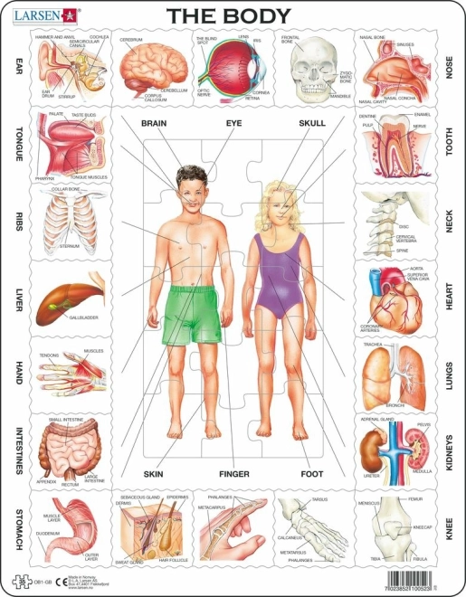 Entdecken Sie den menschlichen Körper spielerisch mit dem Puzzle von Larsen! Nach dem Zusammensetzen entsteht eine übersichtliche Abbildung der wichtigsten Organsysteme und Körperteile. 35 stabile Teile, einzigartige Formen und hochwertiger Karton sorgen für eine lange Lebensdauer. Das Puzzle fördert logisches Denken, räumliche Vorstellungskraft und Geduld – ideal für Kinder ab 4 Jahren zu Hause, im Kindergarten und in der Schule.