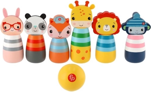 Perfektes Spiel zum Trainieren der Hand-Auge-Koordination. Beim Spielen trainieren Kinder Zielgenauigkeit und Krafteinschätzung. Dank des Designs der Kegel lernen Kinder außerdem Tiere, Farben und Zahlen. Alle Kegel sind aus Holz gefertigt und bieten großen Spielspaß für jüngere und ältere Kinder.