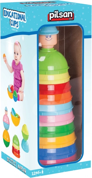 Baustein-Set aus farbigen Bechern, das Ihrem Kind hilft, motorische Fähigkeiten zu entwickeln und beim Stapeln Spaß bietet.