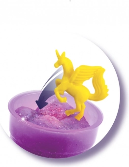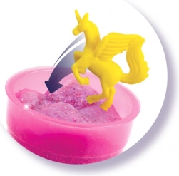 Erstellen Sie Schleim in wenigen Minuten dank der einfachen Anleitung. Einfach Pulver einfüllen, Wasser hinzufügen, Glitzer und Figur dazugeben. Schütteln und beobachten, wie der Schleim die Farbe wechselt.