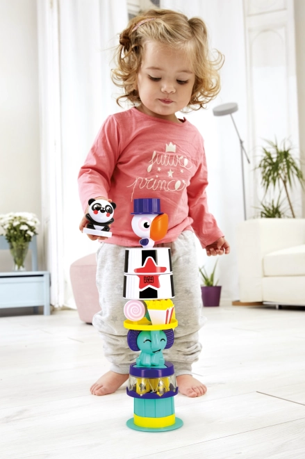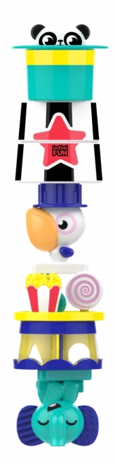 Dieses fröhliche Puzzle ermöglicht endlose Kombinationsmöglichkeiten und fördert die Entwicklung der Fantasie bei kleinen Kindern. Eine einfache und unterhaltsame Art, das Bauen und Stapeln zu lernen.