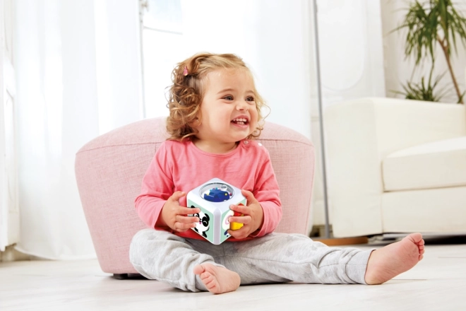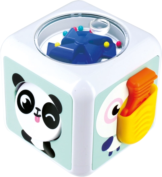 Dieser sensorische Motorikwürfel ist so gestaltet, dass er die sensorische Wahrnehmung der Kinder anregt. Er enthält verschiedene Texturen, Knöpfe, Spiegel und bewegliche Teile, die den Tastsinn und das Sehen des Kindes stimulieren.