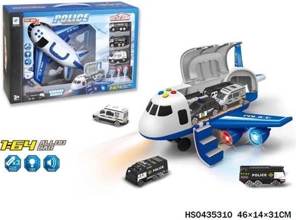 Polizeiflugzeug mit Garage 2-in-1 mit Lichtern und Geräuschen