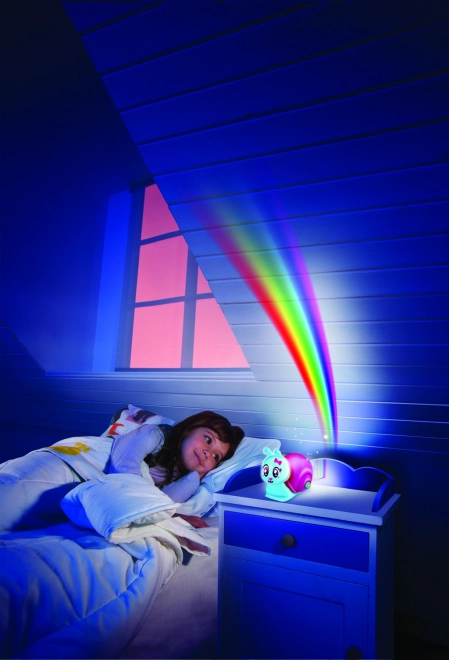 Drücken Sie die Taste am Häuschen, und die Schnecke projiziert einen wunderschönen Regenbogen an Wand und Decke. Ideal, um eine angenehme Nachtatmosphäre zu schaffen.