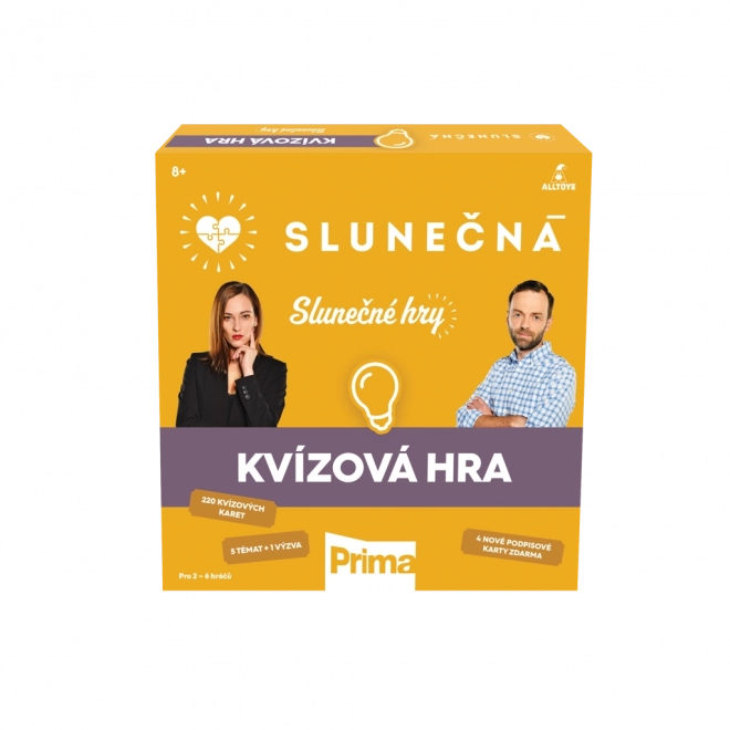 Unterhaltsames Familien-Quizspiel inspiriert von der Serie SLUNEČNÁ, das dein Wissen über die beliebte FTV-Prime-Sendung auf die Probe stellt. 5 Fragenbereiche + Spezialkategorie Herausforderung, Roulette, Fortschritt auf dem Spielplan und Spannung bis ins Ziel. Spiel für 2–6 Spieler, geeignet ab 8 Jahren.