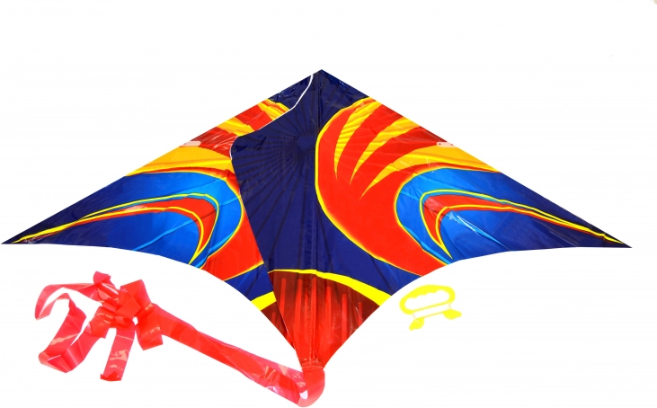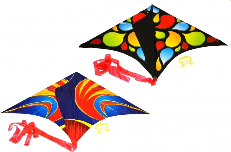 Fliegender Drache mit den Maßen 61 x 114 cm ist ein unterhaltsames Spielzeug für Kinder und Erwachsene, erhältlich in zwei Farben: schwarz und blau.