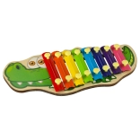 Bunte Holz-Xylophone in Krokodilform sind das ideale erste Musikinstrument für Kinder. 8 Metallplättchen in verschiedenen Farben fördern Gehör, Rhythmusgefühl und Feinmotorik. Enthalten sind 2 Holzschlägel und eine Karte mit einfachen Melodien – perfekter Spaß und gleichzeitig Farblernen.
