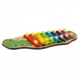 Das Xylophon besteht aus einer Kombination aus Holz und Metall. Ein leichter Schlag mit dem Schlägel auf die Platte erzeugt einen klaren Ton, dessen Lautstärke von der Schlagstärke abhängt. Lebendige, warme Farben laden zusätzlich zum Spielen ein und eignen sich hervorragend zum Erlernen der Farben.