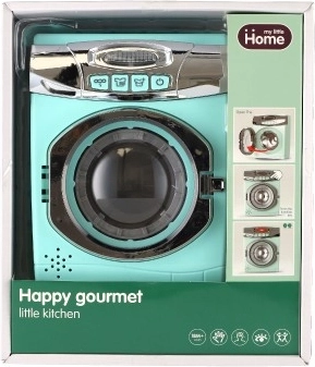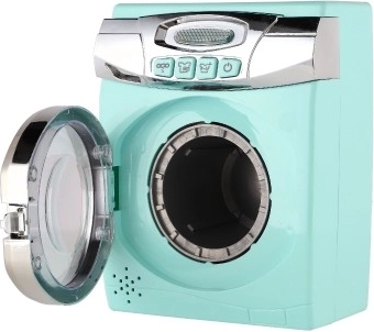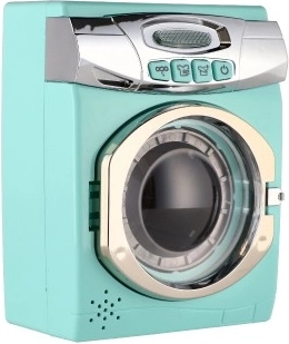 Kinderspielzeug Waschmaschine in leuchtendem Türkis mit Licht- und Soundeffekten ist das ideale Zubehör für kleine Liebhaber der Simulation von Haushaltsaktivitäten.