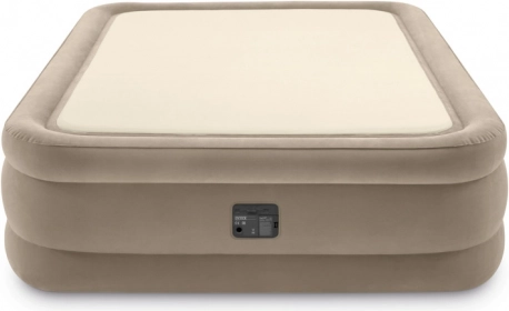 Die eingebaute elektrische Pumpe (220–240 V) bläst das Bett in etwa 4,5 Minuten auf, lässt es ebenso schnell wieder ab und ermöglicht eine kompakte Aufbewahrung. Die robuste Mehrkammerkonstruktion hilft, den Druck zu verteilen, und erhöht die Stabilität auch bei höherer Belastung bis zu 272 kg.