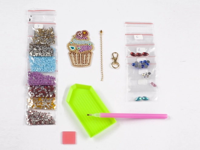 Erstellen Sie einen einzigartigen Cupcake-Schlüsselanhänger mit bunten Steinen. Diese lustige Dekoration ist ideal, um dem Alltag etwas Süße hinzuzufügen.