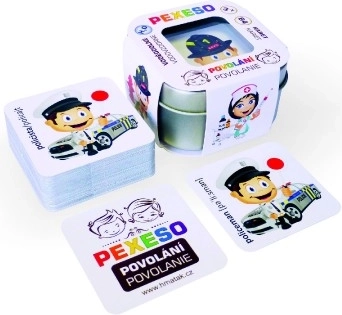 Die Kärtchen bestehen aus hochwertigem Kartenkarton mit Speziallack, der die Lebensdauer verlängert und die Widerstandsfähigkeit erhöht. Dank der kompakten Metalldose (6 × 6 × 4 cm) ist das Spiel auch perfekt für unterwegs. Die Pexeso-Sets Povolání 1 und Povolání 2 haben identische Rückseiten, sodass Sie sie kombinieren und das Spiel auf bis zu 128 Kärtchen erweitern können.