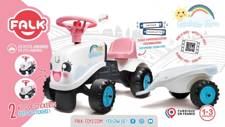 Der Trettraktor Falk Rainbow ist das ideale Spielzeug für kleine Liebhaber landwirtschaftlicher Technik. Er ist mit einem abnehmbaren Anhänger und einer Konstruktion aus hochwertigen Materialien ausgestattet, was Stabilität und Sicherheit garantiert. Der Traktor ist geeignet für Kinder ab 12 Monaten und kann bis zu 25 kg tragen.
